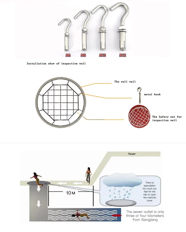 Pit well protection net manhole cover anti fall Drop Safty nets / Mesh
