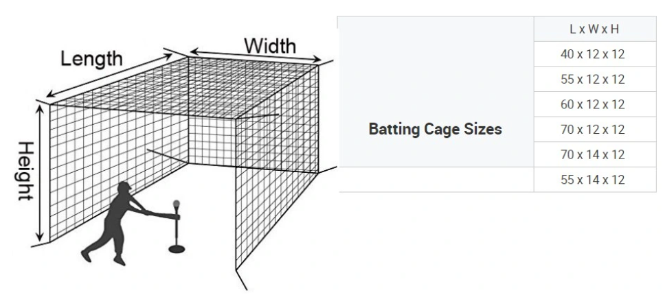 Batting Cage Sizes: L X W X H